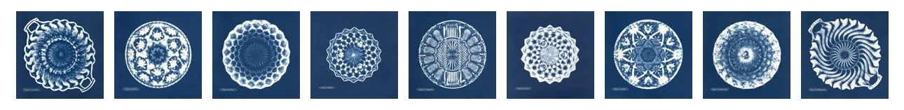 Viewed together, the bowls appear like microscopic details, resembling cellular structures or fragments of memory magnified and suspended in time. They speak to the act of preservation—of objects, stories, and grief—and to the joys and burdens of what we leave behind. Inheritance in Blue invites viewers to reflect on the nature of inheritance, the emotional weight of what we carry, and the quiet power of holding space for loss.